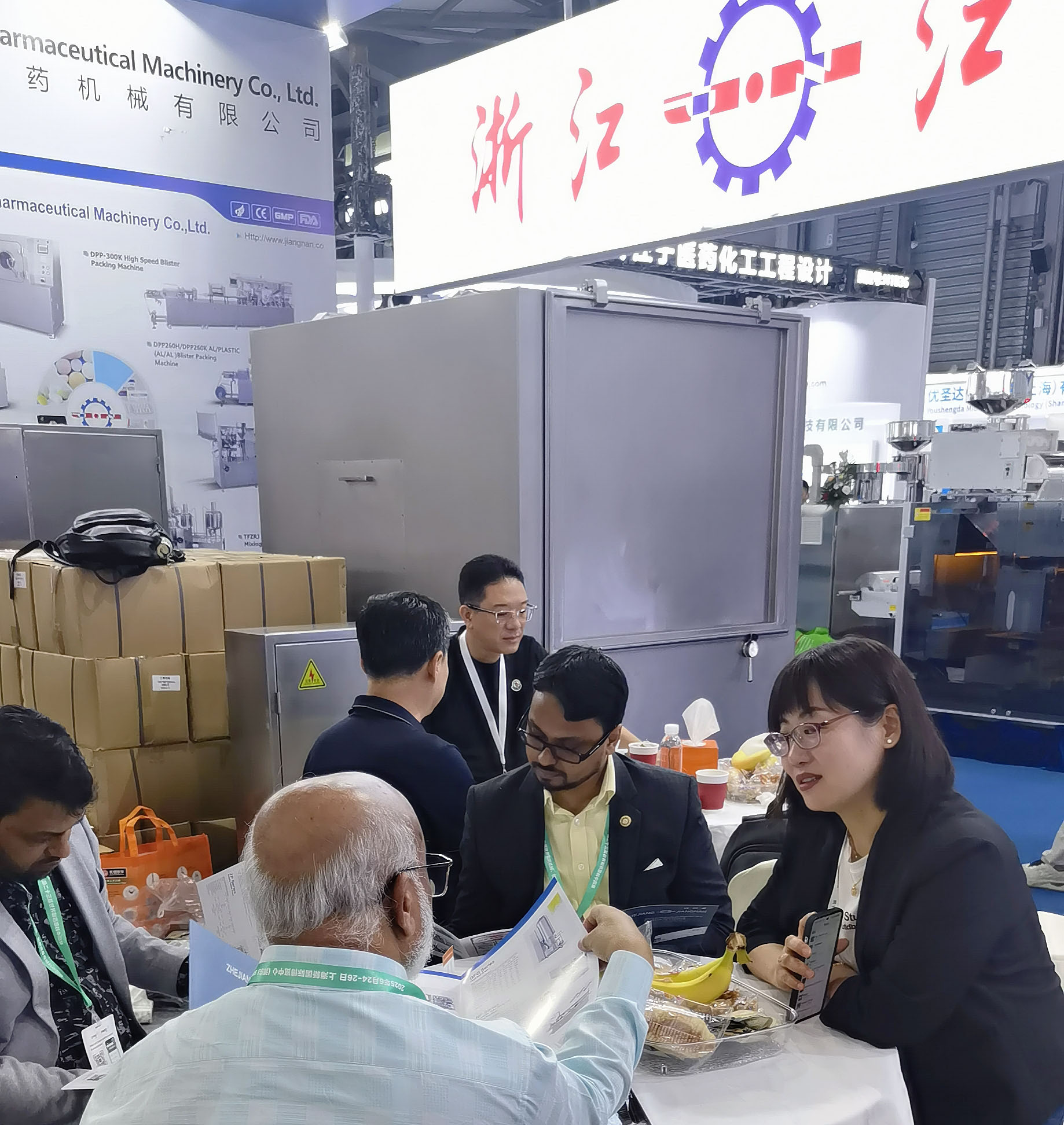 在这场科技盛宴中,万象城网页版携明星产品阵容亮相本次展会。DPH380 高速泡罩包装装盒联线采用全伺服驱动技术,实现每分钟近500板的泡罩包装,配合机器人自动上料装置,可为药企提供高效包装的需求。软胶囊生产线通过模块化设计实现多规格柔性生产,而高效智能包衣机凭借精准控温和节能环保特性,吸引众多海外客户驻足咨询。现场专业买家对浙江万象城网页版的产品技术优势给予高度认可,部分企业已达成初步合作意向。