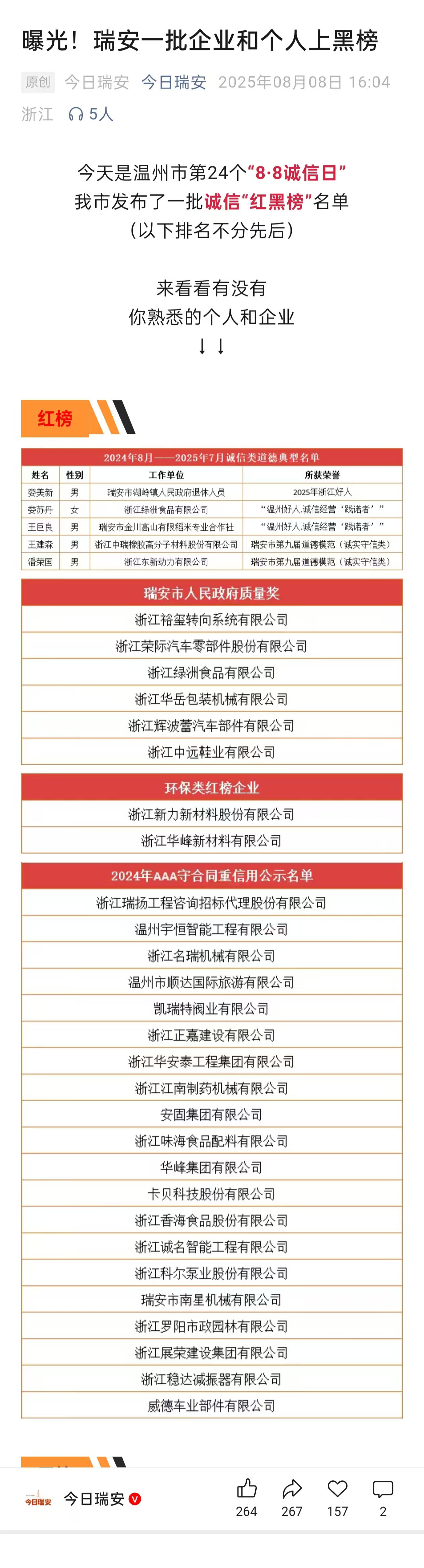 2025 年 8 月 8 日,温州市迎来了第 24 个 “8・8 诚信日”。当日,市委宣传部、市文明办等多家单位联合发布了一批诚信 “红黑榜” 名单,旨在褒扬诚信、惩戒失信,营造诚实守信的社会风尚。